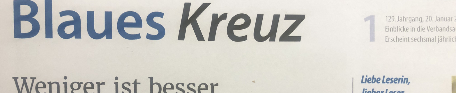 Unsere Zeitschrift Blaues Kreuz berichtet Neuigkeiten aus der Suchtwelt und dem Blauen Kreuz in der Schweiz – mit inspirierenden Lebensgeschichten, Gesundheitstipps, Nachrichten aus den Regionen und mehr.